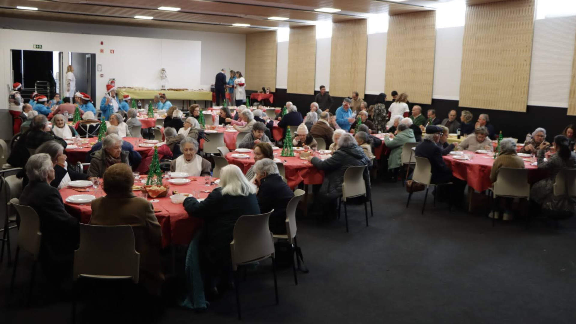 No dia 16 de dezembro, o Salão Paroquial ganhou um ambiente diferente e os sorrisos imperaram, dando brilho às relações entre idosos, colaboradores, voluntários, direção e entidades representativas da sociedade, cujas presenças foram para a instituição de grande apreço e revestidas de grande disponibilidade e generosidade. Celebrou-se o tradicional Almoço de Natal, um momento que vai muito além de uma simples refeição: foi um verdadeiro encontro de família.