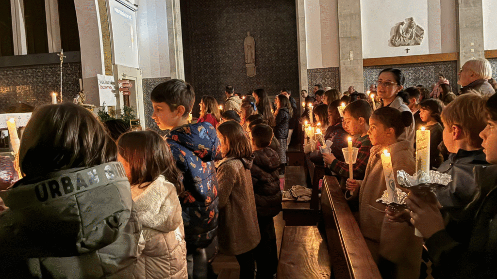 No sábado, dia 29 de novembro, as crianças do 3.º ano da catequese da Paróquia de São José celebraram a Festa da Luz, um marco importante na sua caminhada espiritual, convidando-as a renovar as promessas do Batismo e a aproximarem-se, com o coração ardente, do mistério da Eucaristia. Ao receberem a chama proveniente do Círio Pascal — símbolo maior de Cristo Ressuscitado que vence as trevas —, estes pequenos discípulos proclamam publicamente que Jesus é a verdadeira “Luz do Mundo” (Jo 8,12) e o guia seguro para as suas vidas. O Sr. Prior, Padre Jorge da Silva Santos, recordou às crianças que “a fé não é apenas para ser guardada, mas para ser mantida acesa e viva no quotidiano”.