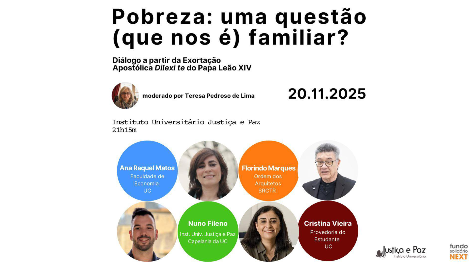 📅 No próximo dia 20 de novembro de 2025, às 21h15, o Instituto Universitário Justiça e Paz, em Coimbra, abre portas a uma tertúlia imperdível dedicada ao tema “Pobreza: uma questão (que nos é) familiar?”.